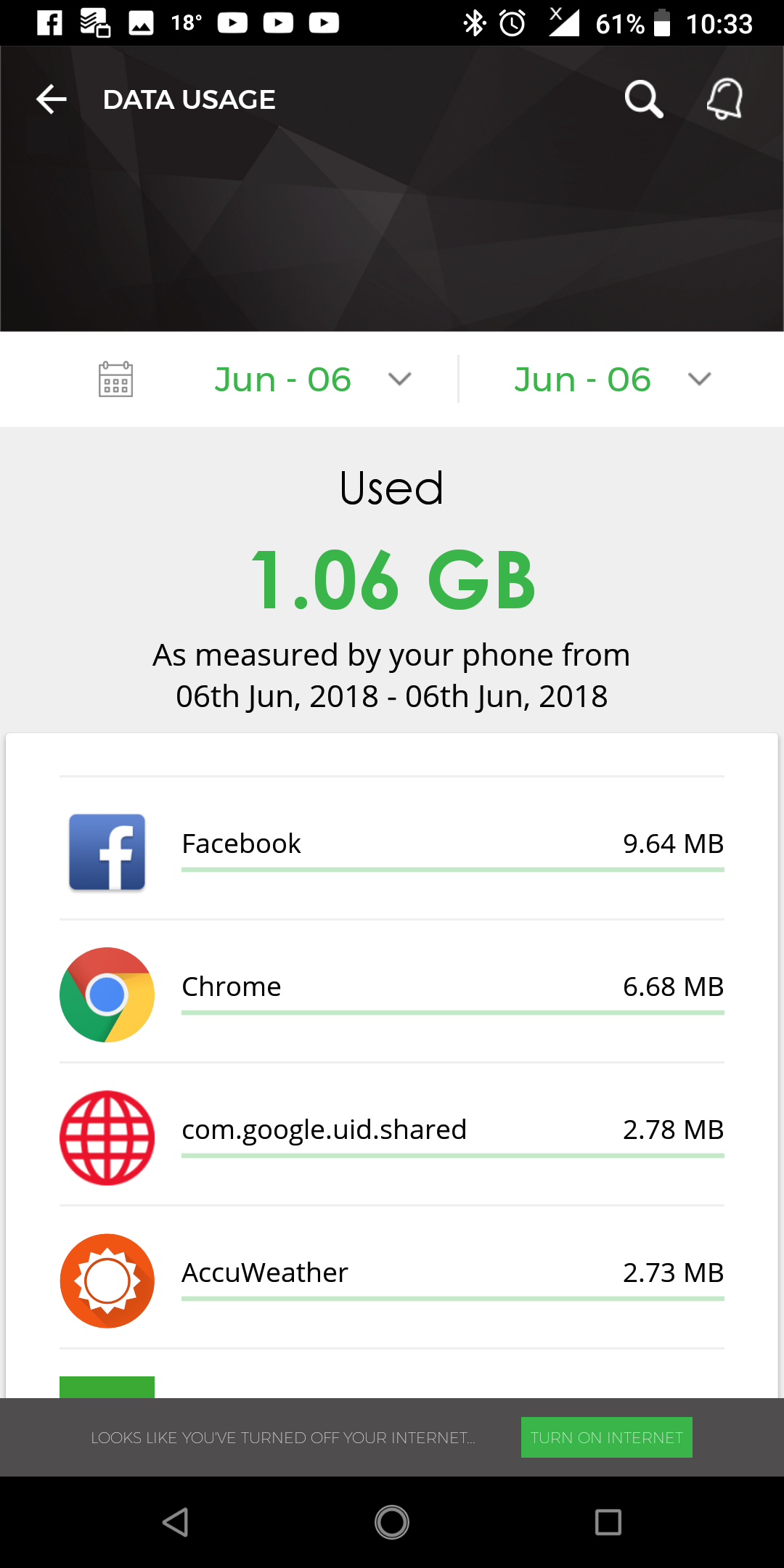 As you see above, I went past my limit but not by much. There are ways to mitigate against this on Android by setting data usage limit in the settings menu. When you reach the data limit, your mobile data will be disconnected, you will have to manually activate mobile data if you want to keep using it.