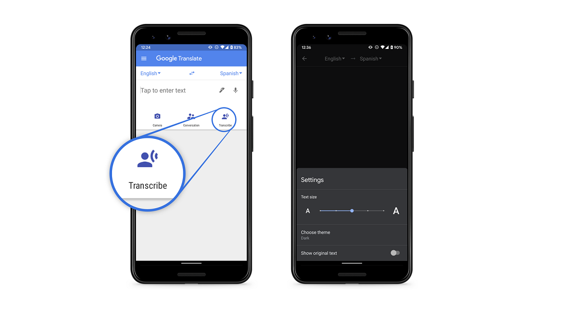 Consequently, Google has added a new “Transcribe” icon on the app’s home screen. If you’re in a fix where someone is talking in Spanish, you have to select the source language (Spanish in this case), and then the destination language which can be either of the remaining seven. After that simply tap on the mic icon at the bottom.