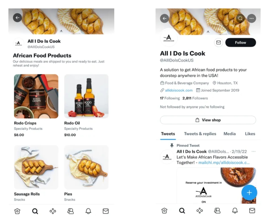 Twitter began exploring Twitter shopping back in 2015 when they rolled out features like the “Buy Now” button, product pages, and product collections. They later launched the Shop Module where businesses can showcase their products at the top of their profiles.