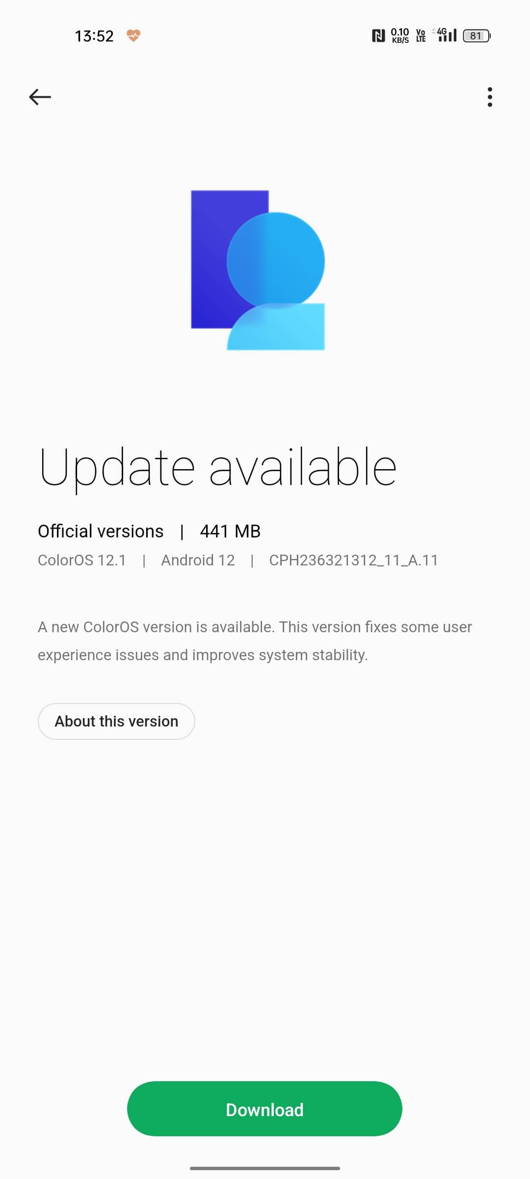 The update is about 441MB in size which is not so huge and should not take long to download. You can check if you have the update by heading to Settings > About Device.