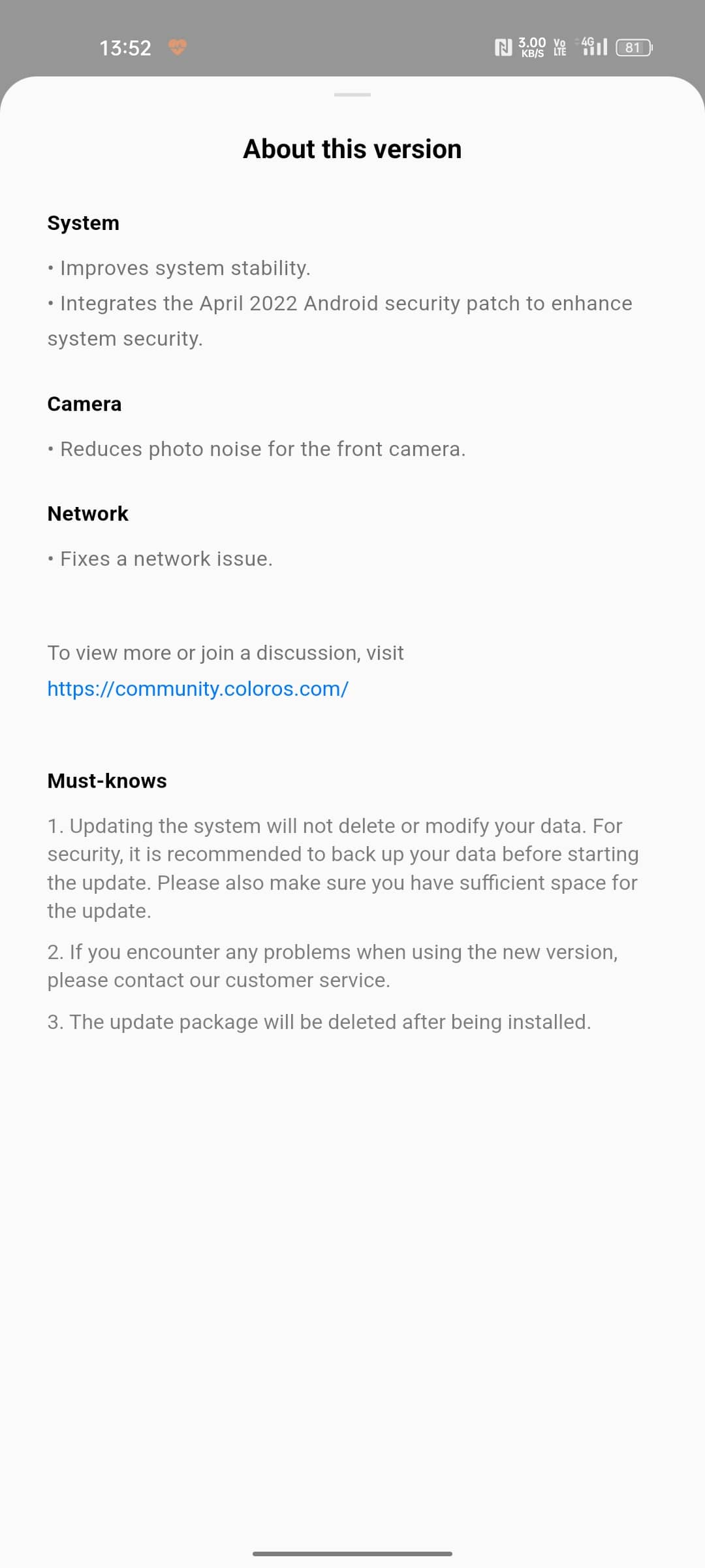 Besides the April security patch, this update also does the following: